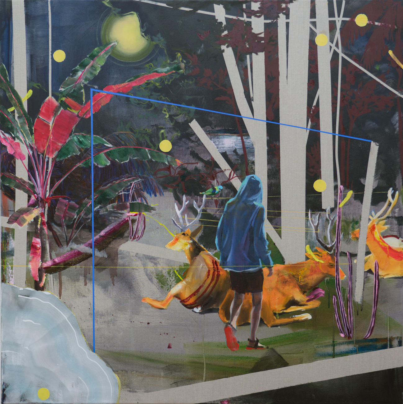stringed deers, 100x100cm, mixed media on canvas, 2025 22 décembre 2025 stringed deers, 100x100cm, mixed media on canvas, 2025